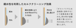 建物は大気中の汚染物質が建物表面に付着・蓄積することで徐々に汚れが目立ってきます。 |