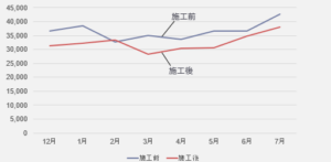 遮熱コーティング施工前後で消費電力が約10%削減(8か月平均)されていることが確認できます。