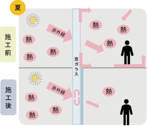窓からの熱の流入、流出を抑えることで電気代の削減や熱中症リスクの低減が期待できます。